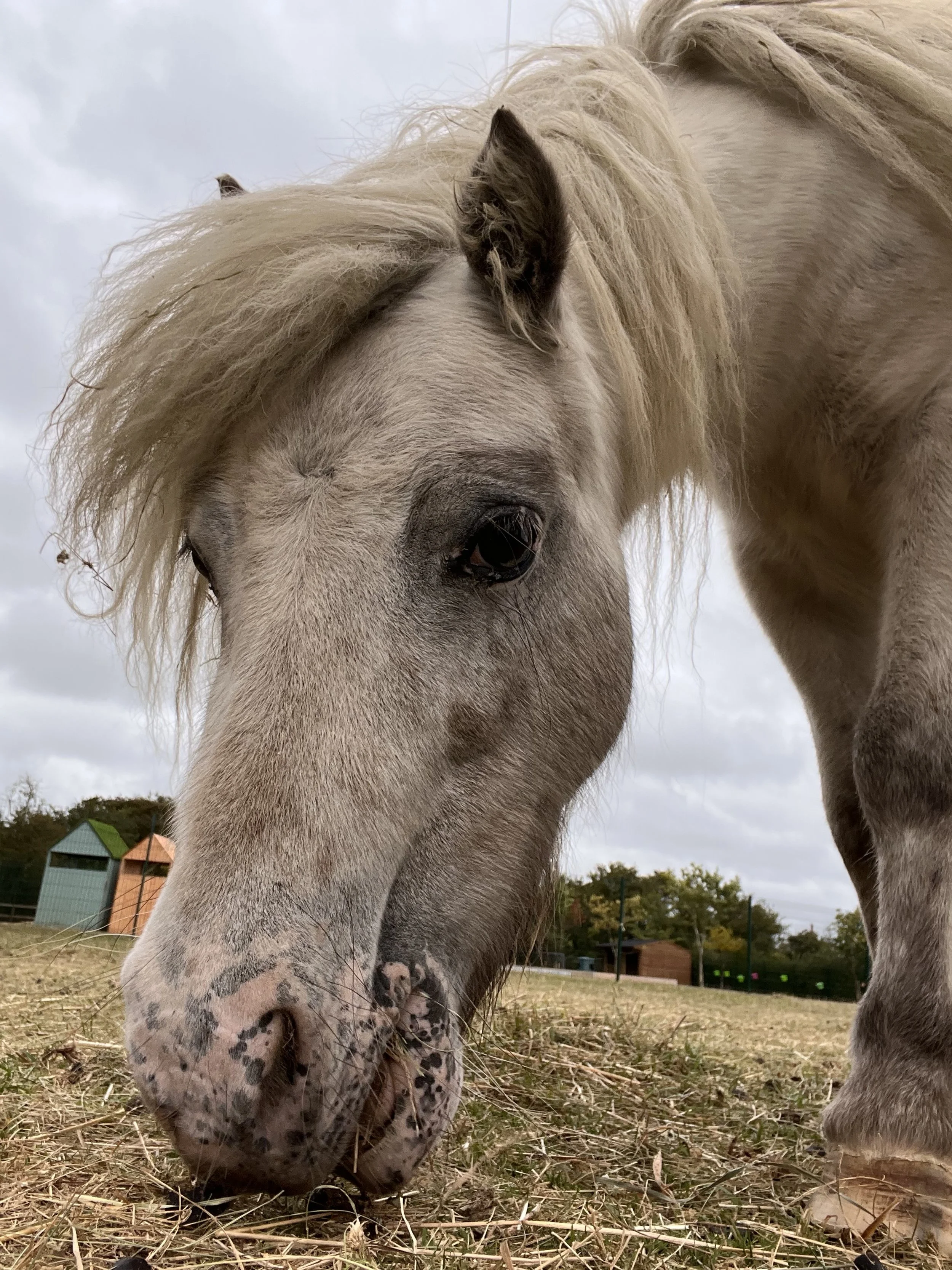 George is one of the three ponies we rescued from a housing estate late one night. He was a stallion (meaning he still had his balls) so we immediately got him castrated. He’ll be much happier without his balls. Stallions tend to fight and can be a real handful but without all that testosterone they are really sweet and gentle. He’s very nervous around people but we are hoping that will change as he realises we all love him. He is the cutest little miniature Shetland and we love his colouring and his floofy hair. He’s best friends with Bobby and he loves Ralph the big pony so we will be keeping them all together.