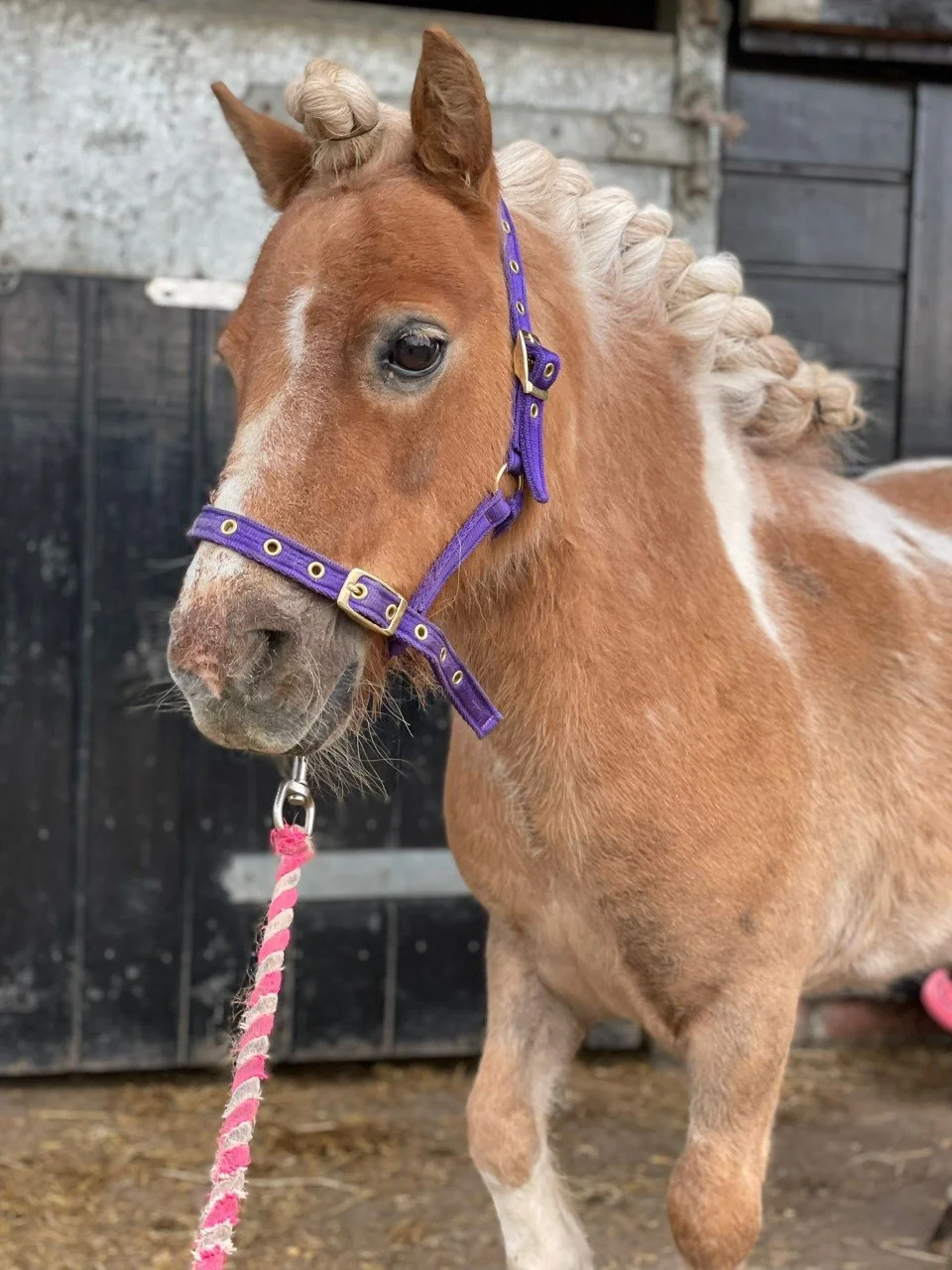 Lisa is the daughter of Gladys. These two were dumped and had been running round the roads of Essex for 3 weeks. Eventually they found their way into a field owned by a friend of Jodie. She then asked Jodie to come and get them. Their manes were very matted so we had to give them a good pamper once we got them home. Lisa is so friendly and loving and she loves attention. She nuzzles everyone she meets and would stand there all day being brushed and stroked. She’s such a little cutie and we all fell in love with her on sight.