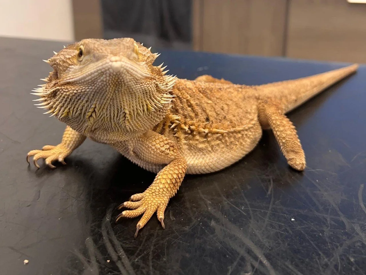 Jesse is a bearded dragon. Jodie was in a reptile shop one day and the owner handed Jesse to her and said “can you take him? Nobody wants him as he has no feet” When Jesse was a baby he had his feet bitten off by other dragons and subsequently had sat in the reptile shop ever since. Nobody wanted to buy him as he was “deformed”. Jodie immediately said yes and then set about finding a suitable vivarium and accessories for him. Jesse has since had a house upgrade thanks to Claire who bought him a new vivarium. Jesse now leads the life of luxury in his dragon palace and he gets lots of fuss and attention. He’s a really sweet loving boy who loves cuddles and strokes (especially chin strokes). Everybody loves Jesse because of his sweet nature. He’s got a huge personality and loves to free roam all over the floor.