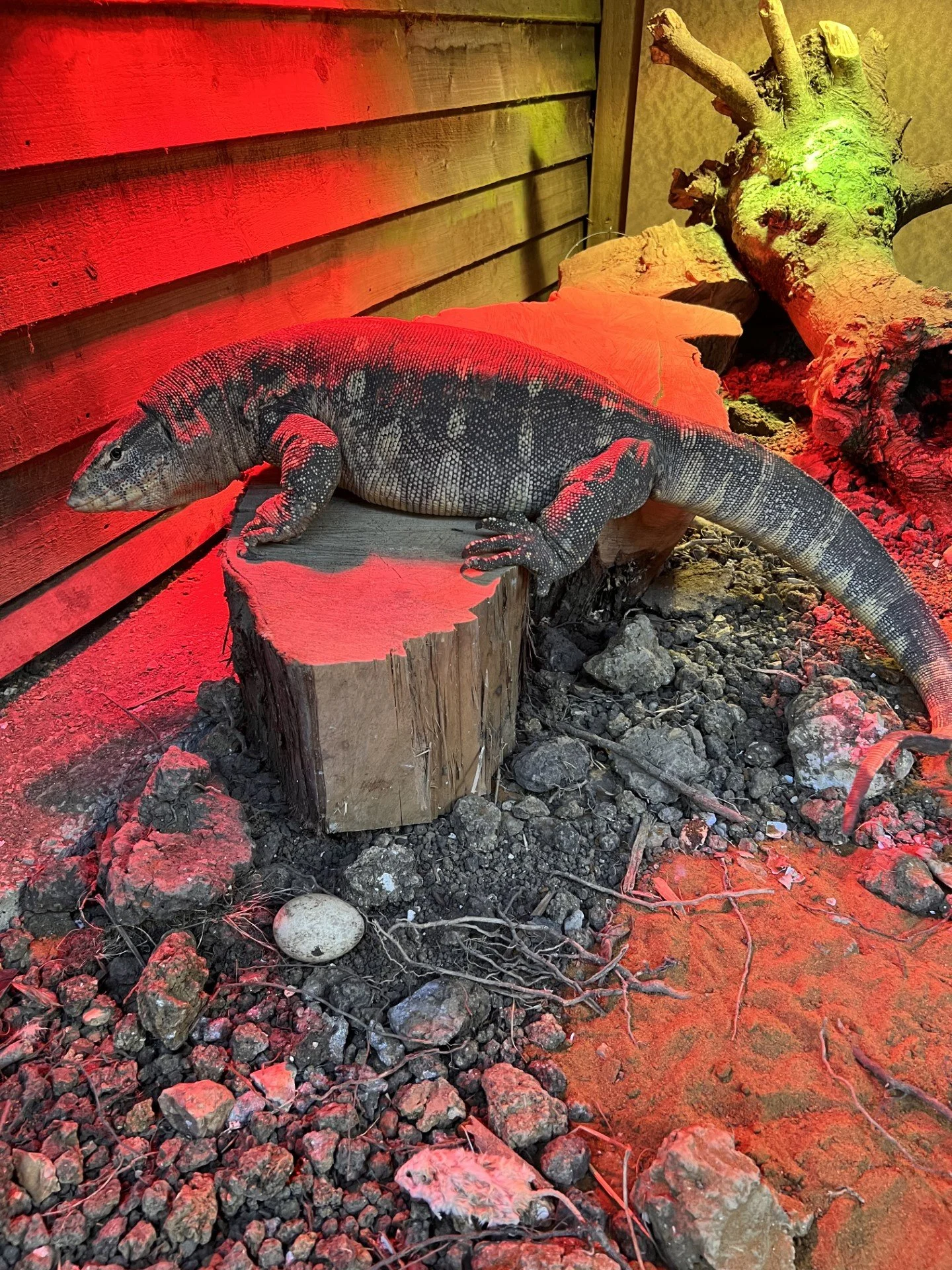 Zilla is a 6ft long Nial Monitor Lizard. She came to us because she outgrew her previous owners home. He no longer had the space for her and she was confined to a box much too small for her. She is not very friendly; monitor lizards have a tendency to be grumpy! When we go into her enclosure she hisses at us and whips her tail around (a whip from her tail would really hurt!). We had a few days only to build an enclosure for her and luckily our amazing builder came to the rescue and got it done in time. She even has her own pool in her enclosure to swim in! Her favourite things to eat are rats and eggs. She’s an amazing lizard and we all love watching her as she prowls around her enclosure and basks under her heat lamp.