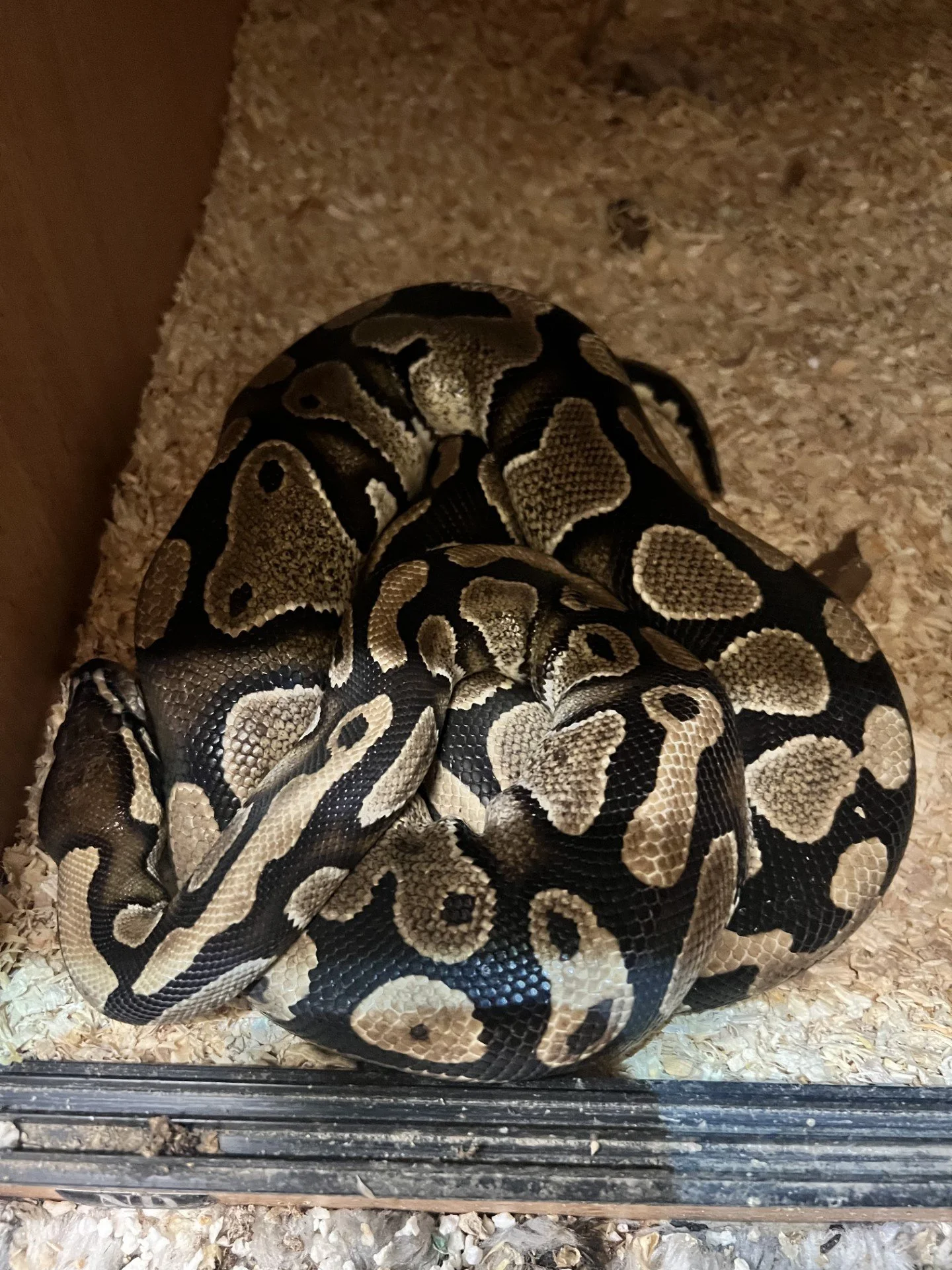 King is a royal python. His story is a funny one. He escaped from his tank at his previous owners house and they couldn’t find him anywhere in the house. Some 9 months later the owners were away on holiday and the house sitter saw a snake slither across the floor. By then the owners had gotten rid of his vivarium as they thought he was gone for good. We got the call to ask if we would take him and luckily we had a spare vivarium here. King now happily lives in our reptile room. He’s very friendly and we often get him out to hold him and let him explore.